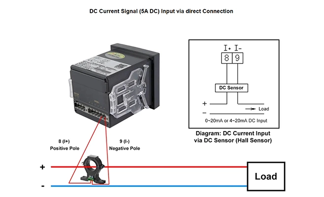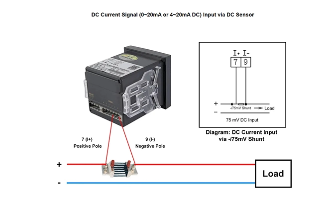 Nennstrom: 5A DC (direkte Verbindung); 0/4 ~ 20mA DC (über DC-Sensor); 75mV (über Shunt)