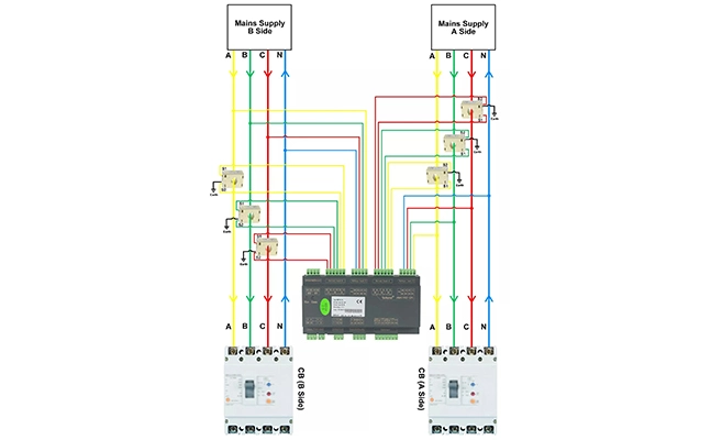 Dual AC-Eingangs schaltungen Überwachung ● A B Dual unabhängige AC-Schaltkreise Überwachung ● Volle Überwachung der elektrischen Parameter ● Analyse der Strom qualität |
